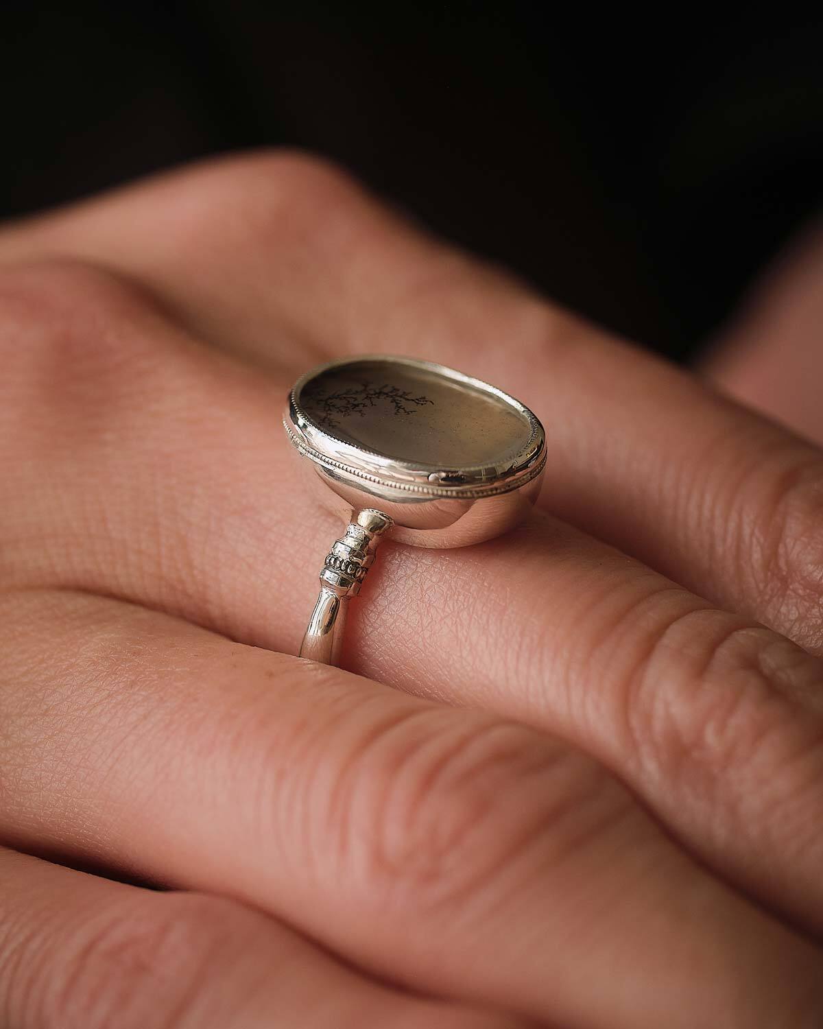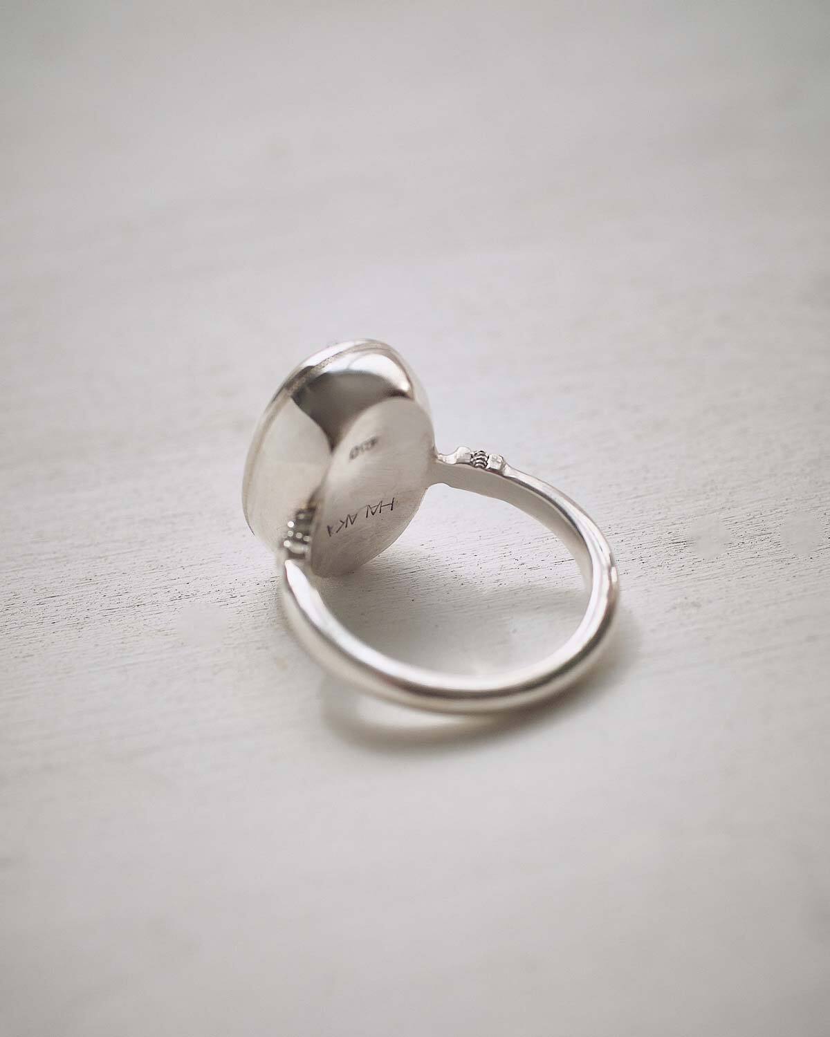 落ち着いた色合いと印象の指輪です。秋冬の手元を彩るアイテムとしてぜひコーディネートに取り入れてみてください。