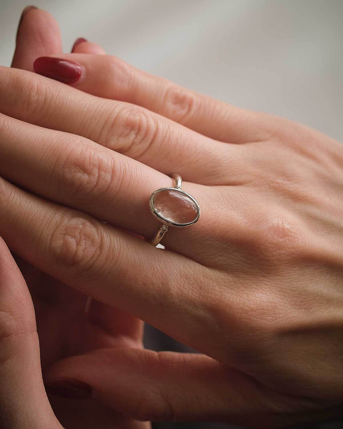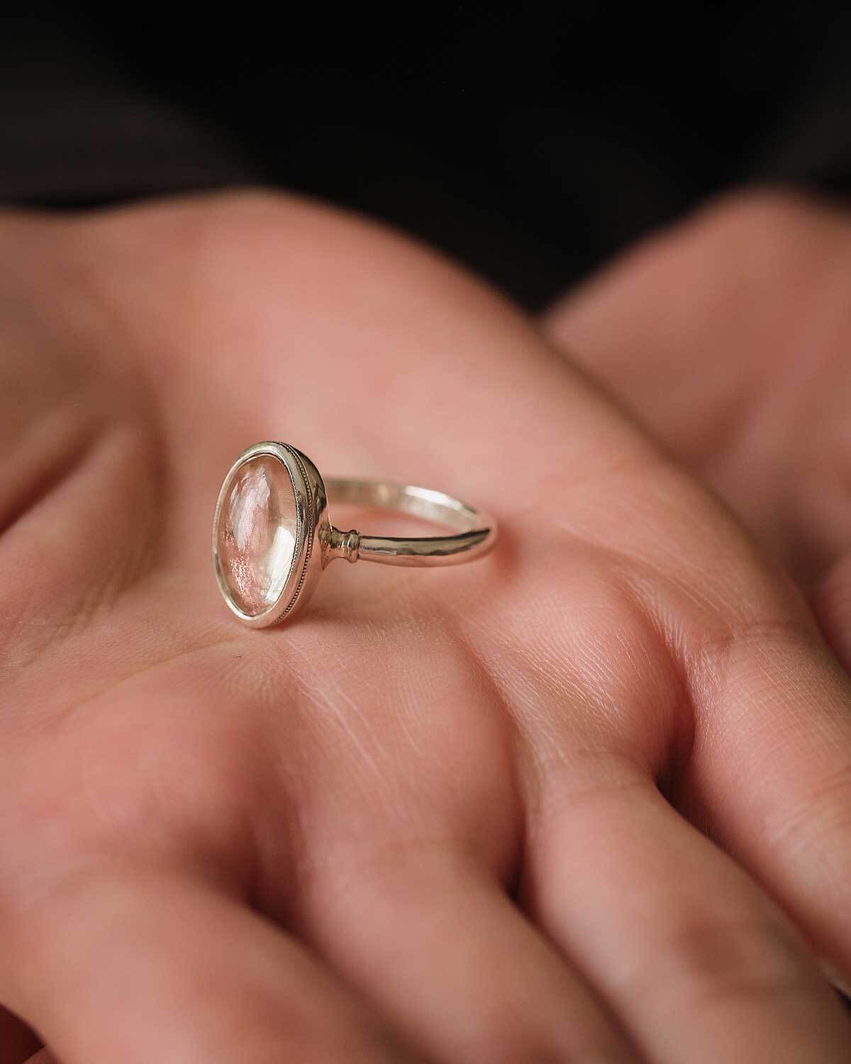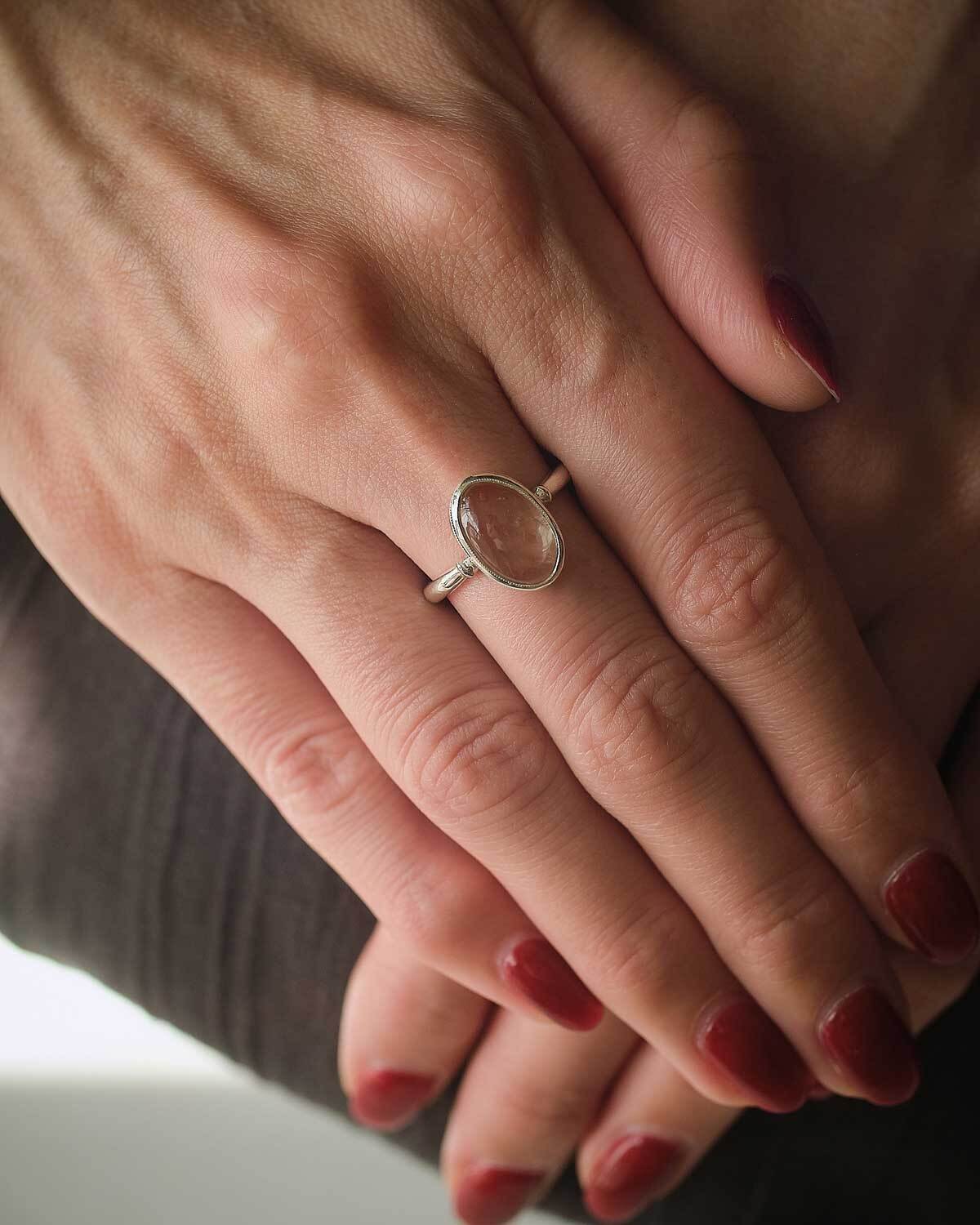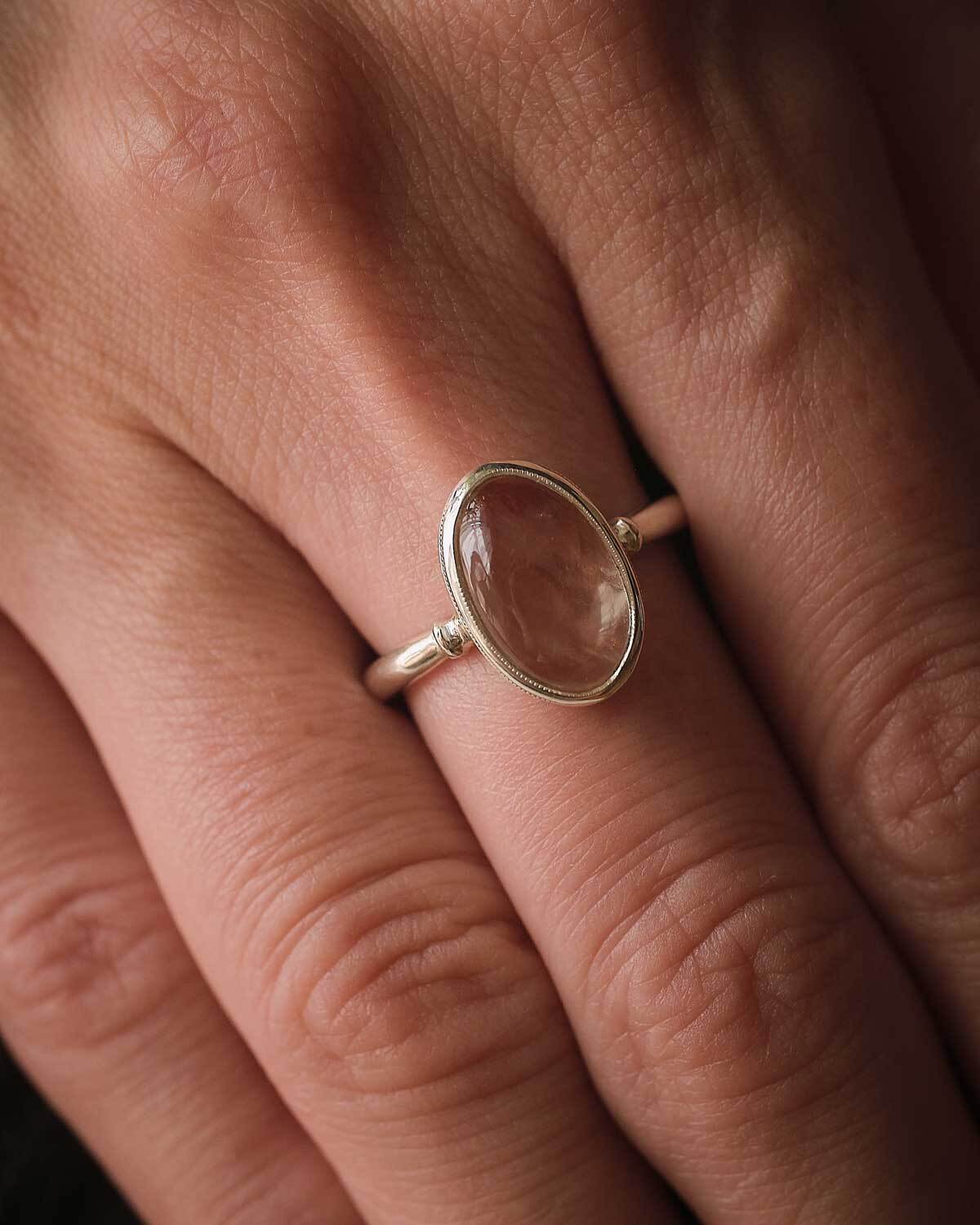 カボションに細かいミル打ちの装飾も相まってクラシカルな印象の指輪になっています。