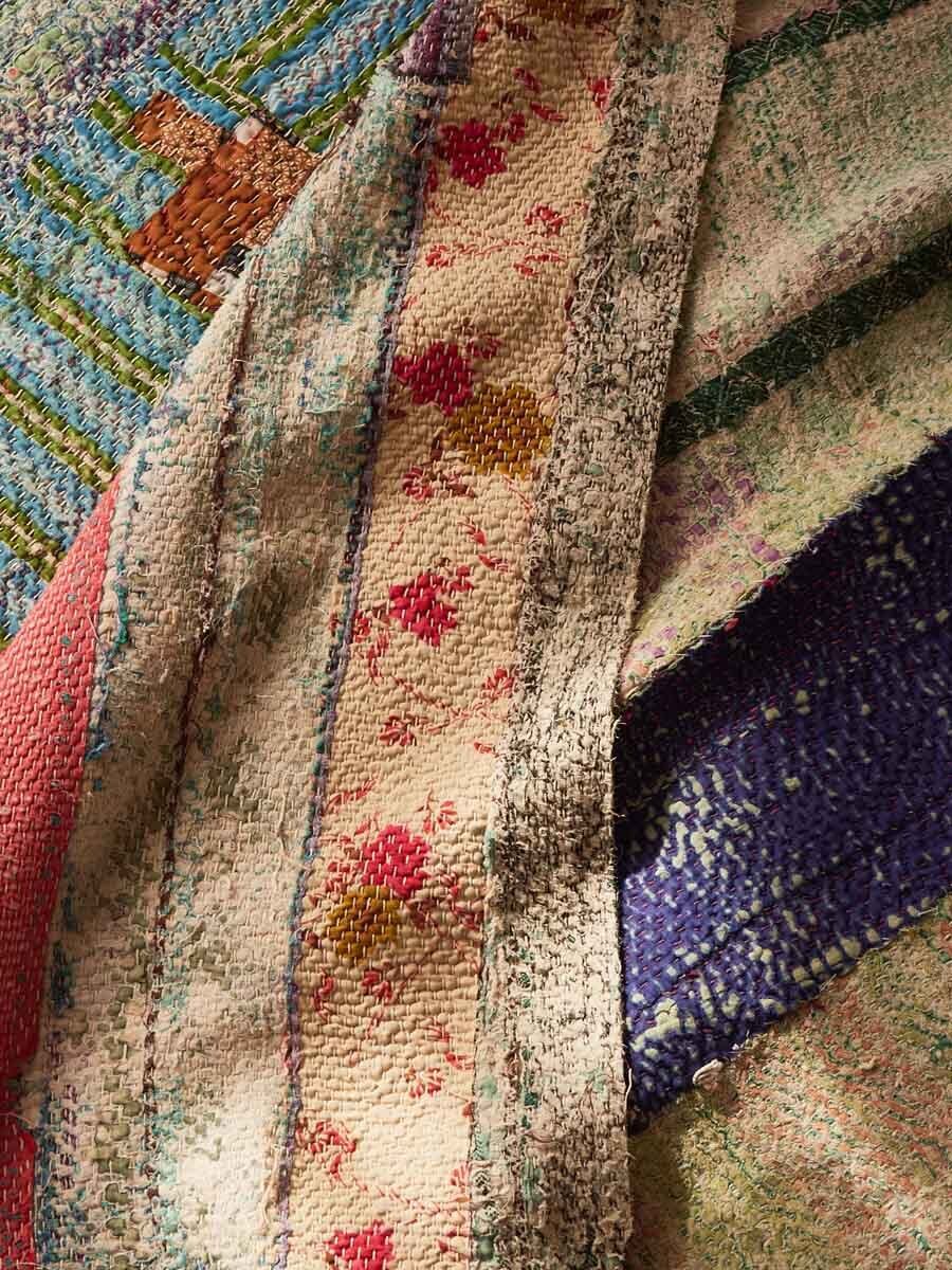 サリーなどの古布の端切れを幾重にも重ねてパッチワークで繋ぎあわせ、